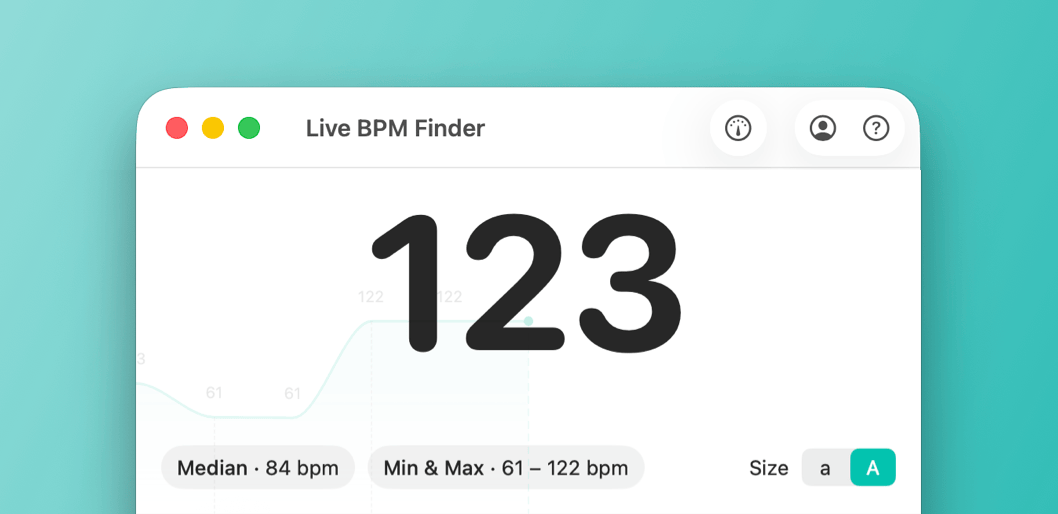 Detect tempo in real time from your device's microphone, completely offline. Track min, max, and median BPM on screen, or switch to full-screen mode to display the current tempo in big letters.